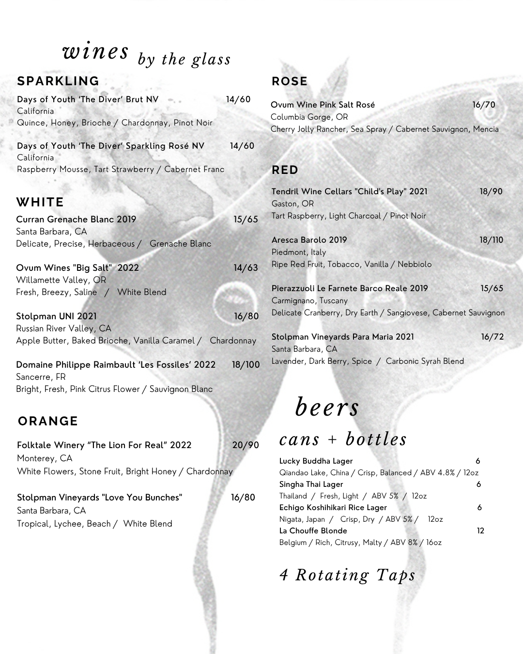Three sections of a restaurant interior with decorated tables and colorful butterfly murals, a dining area with purple and pink lighting and animal figurines on shelves, and a dining table set with flowers, utensils, and a menu.